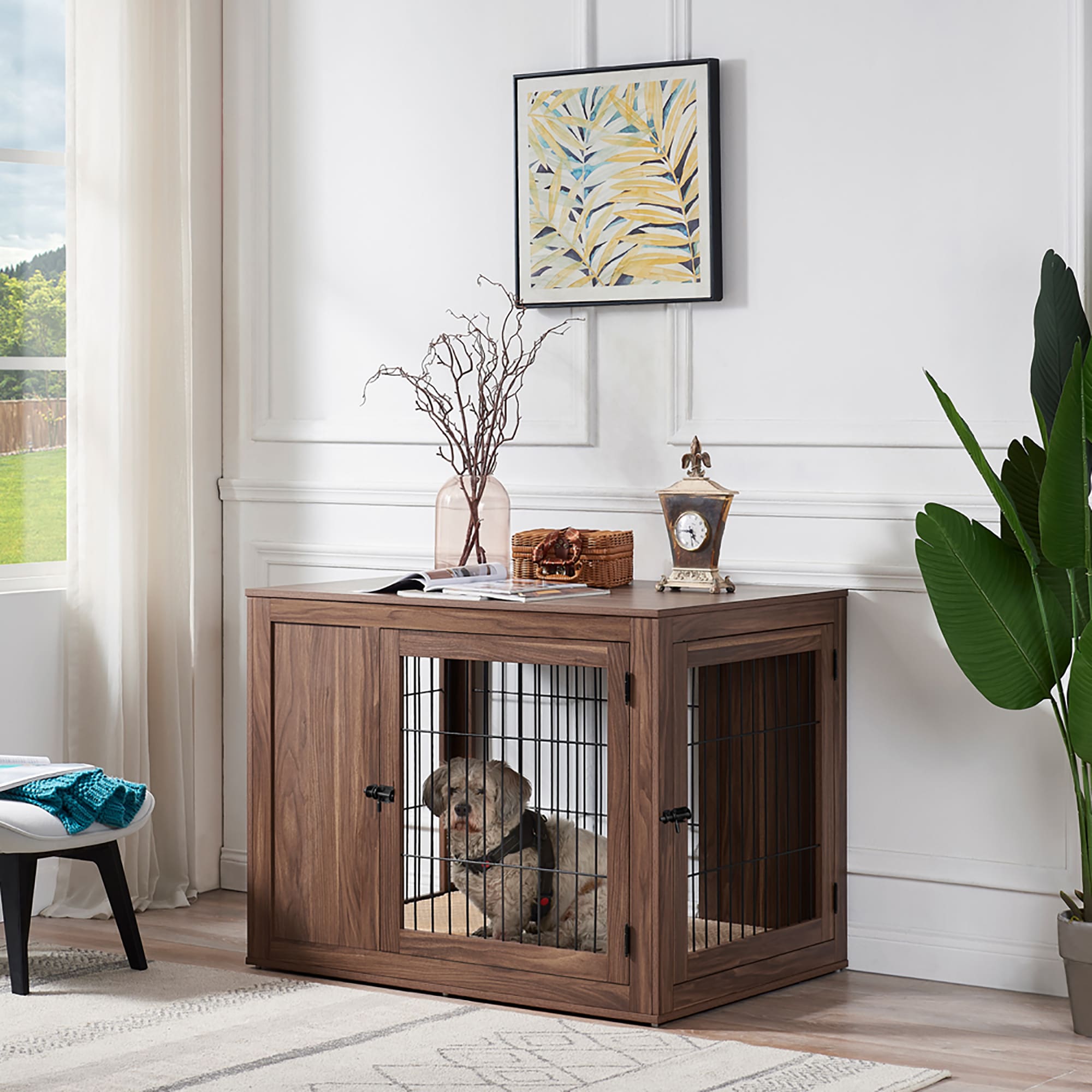 Unipaws Wooden End Table Dog Crate In Walnut 41 L X 28 5 W X 31 H Petco